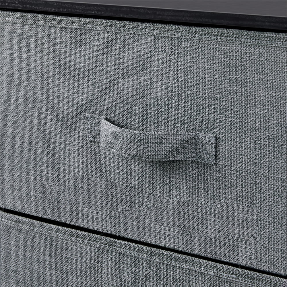 SmileMart 7-Drawer Fabric Storage Tower with Black Metal Frame, Dark Gray: Wooden inserts in drawers to support your items Easy to clean fabric material Color: Dark Gray, Black Material: Iron, MDF Boards, Fabric Overall Dimension: 63.5 x 30 x 79 cm/25 x 12 x 31.5” (LxWxH) Big Drawer Dimension: 40 x 27.5 x 20.4 cm/15.7 x 11 x 8” (WxDxH) Small Drawer Dimension: 16 x 27.5 x 15.5 cm/6.3 x 11 x 6” (WxDxH) G.W. : 8.5 kg/18.7 lb Max. Load Capacity of the Tabletop: 29 kg/64 lb Max. Load Capacity of Each Drawer: Big: 2.6 kg/6 lb; Small: 1.6 kg/4 lb Note: Please allow ±1cm/0.5” error due to manual measurement. Please secure the storage to the wall with the provided hardware. Easy to assemble: It is super easy to put this drawer chest together. All necessaries and instructions are accompanied in the package.