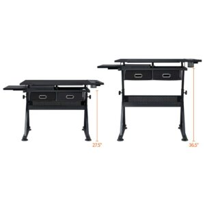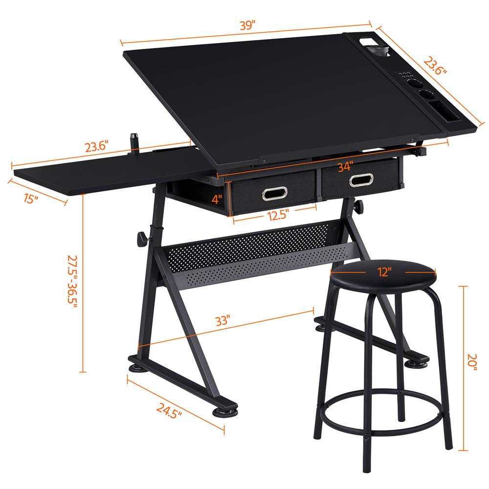 Alden Design Adjustable Drafting Table with Stool, Black