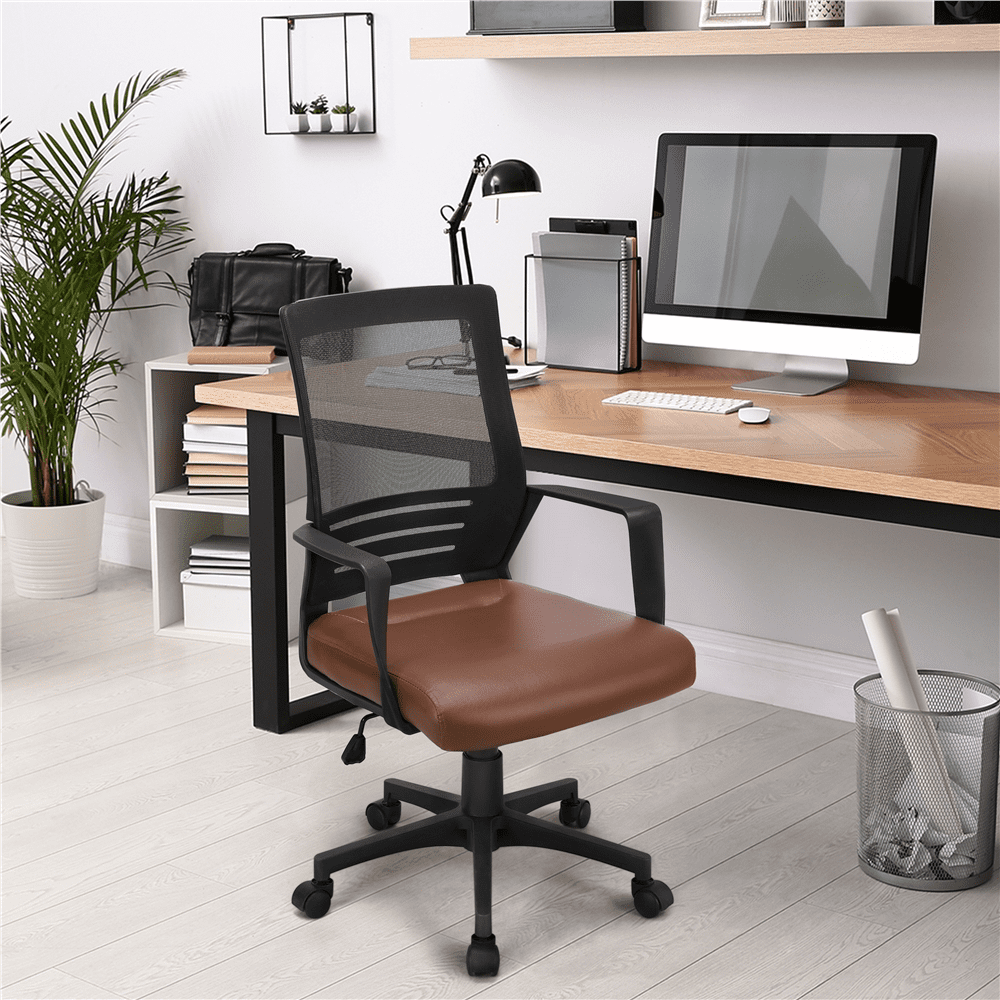 Alden Design Adjustable Midback Ergonomic Mesh Swivel Office Chair with Lumbar Support, Brown Seat