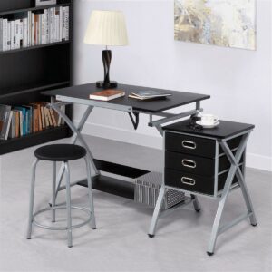 Alden Design Adjustable Steel Drafting Table with Stool, Black
