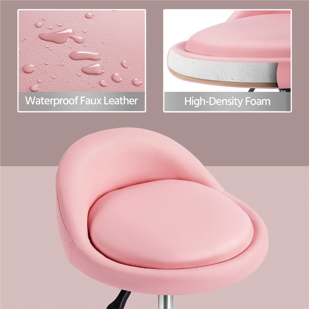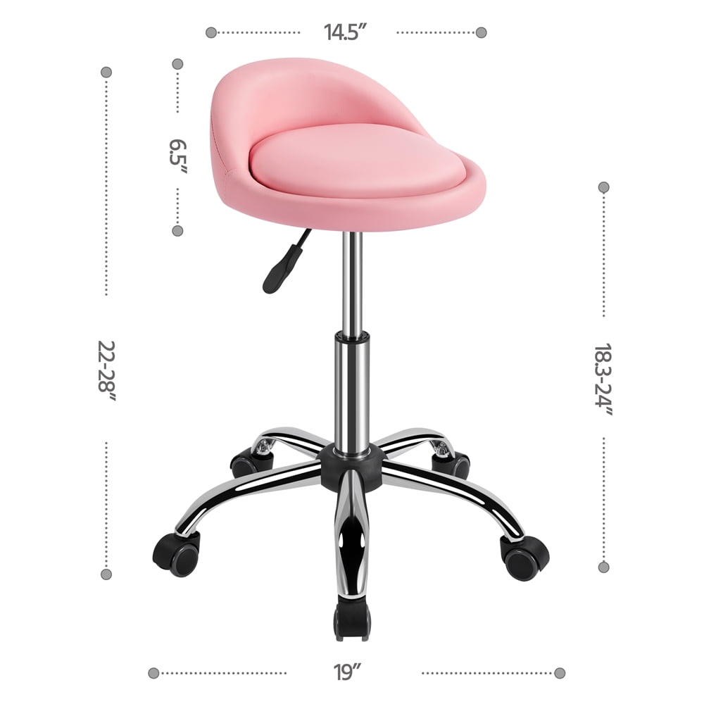 SmileMart Adjustable Rolling Salon Stool, Pink: Material: Steel & Sponge Dimension: 48.5 x 48.5 x (55.5-70 cm)/19.1 x 19.1 x (21.9-27.6)” (L x W x H) Max. Loading: 120 Kg / 264.6 Lb Adjustable Seat Height: 46.5-61 cm/18.3-24″ G.W: 5.3 kg / 11.7 lb Color: Pink