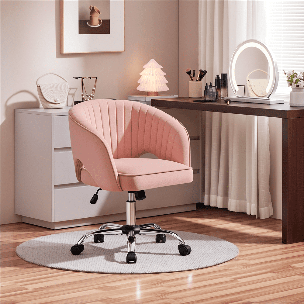 Alden Design Adjustable Tufted Velvet Office Chair with Barrel Back for Home Office, Pink