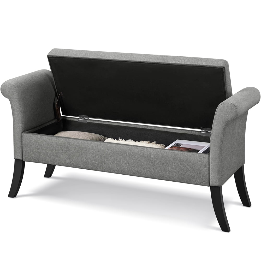 Alden Design Button Tufted Ottoman Storage Bench with Rolled Arms, Light Gray Fabric