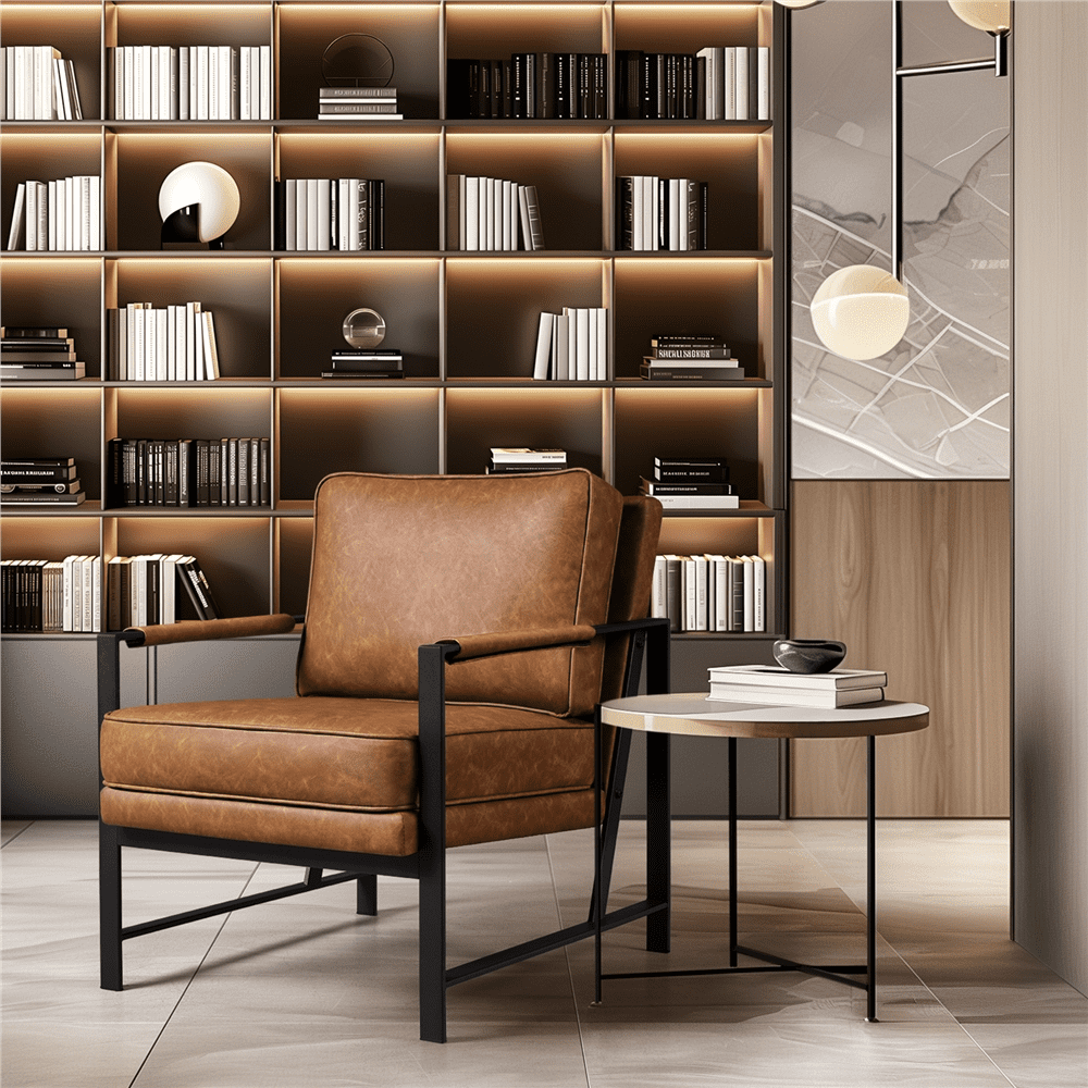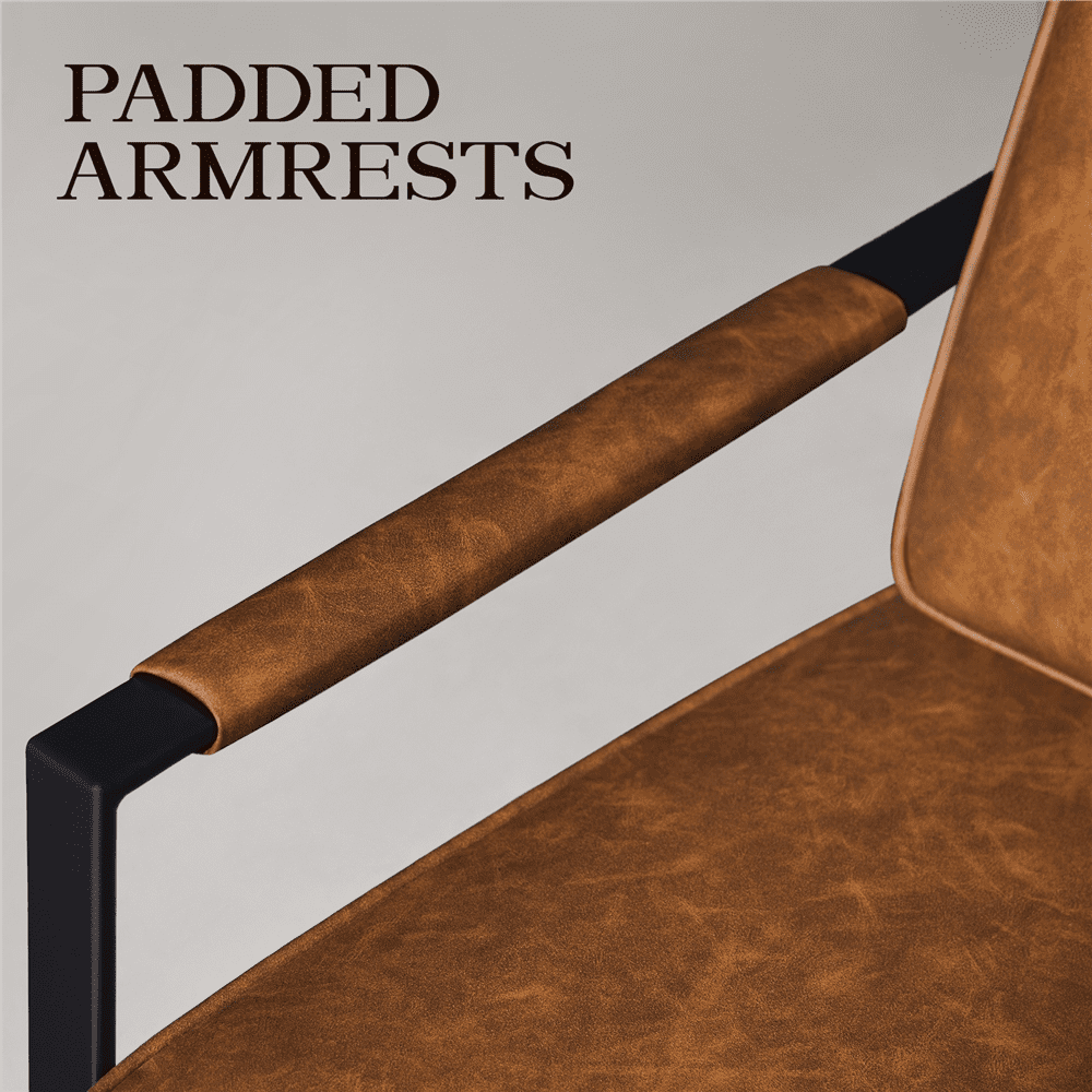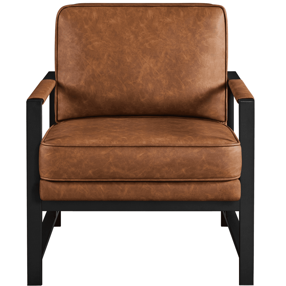 Alden Design Faux Leather Modern Accent Chair with Metal Frame for Livingroom, Light Brown