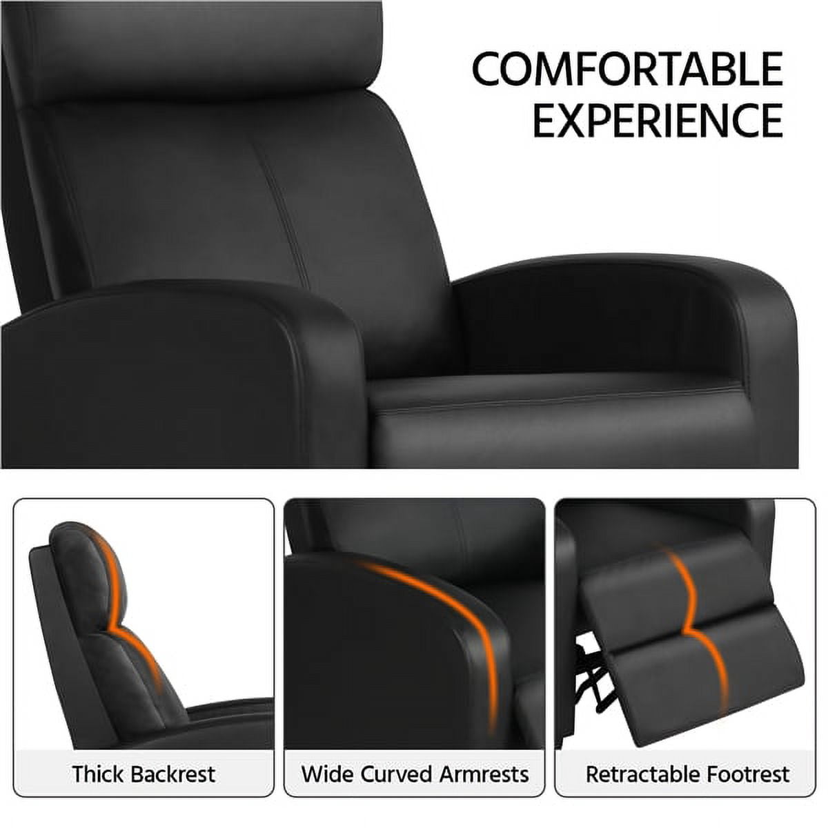 Alden Design Faux Leather Push Back Theater Recliner Chair with Footrest