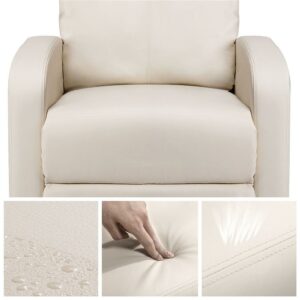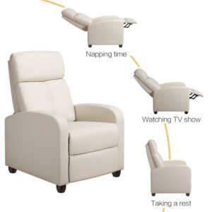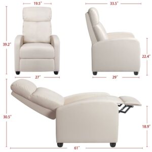 Alden Design Faux Leather Push Back Theater Recliner Chair with Footrest, Cream