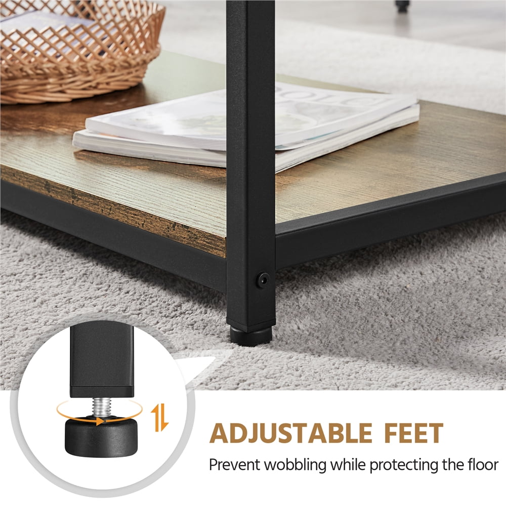 SmileMart Coffee Table with Storage Shelf for Living Room, Rustic Brown: Material: MDF & Iron Overall Dimension: 100x50x45cm/39.5x20x18’’(LxWxH) G.W.: 16.7kg / 36.8lb Desktop Load Capacity: 90 kg/198 lb Shelf Load Capacity: 70 kg/154lb Color: Rustic Brown Note: Please do not stand on the tabletop