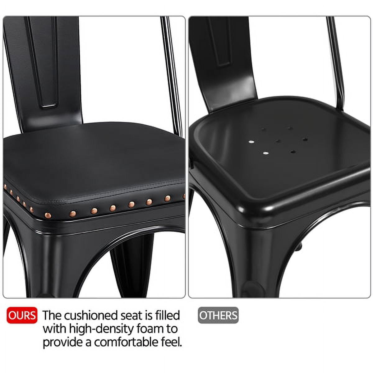 Alden Design Metal Dining Chairs Soft Cushioned Upholstered Chairs Bistro Cafe Chairs Industrial Style for Indoor Outdoor, Set of 4, Black