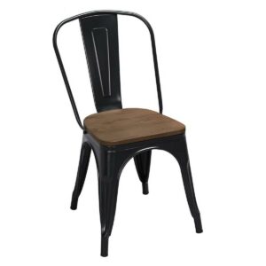 Alden Design Metal Dining Chairs with Wooden Seat, Set of 4, Black