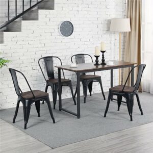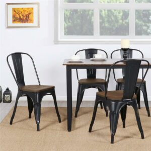 Alden Design Metal Stackable Dining Chairs with Wooden Seat, Set of 4, Black