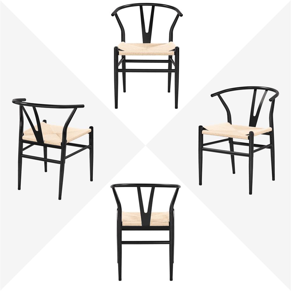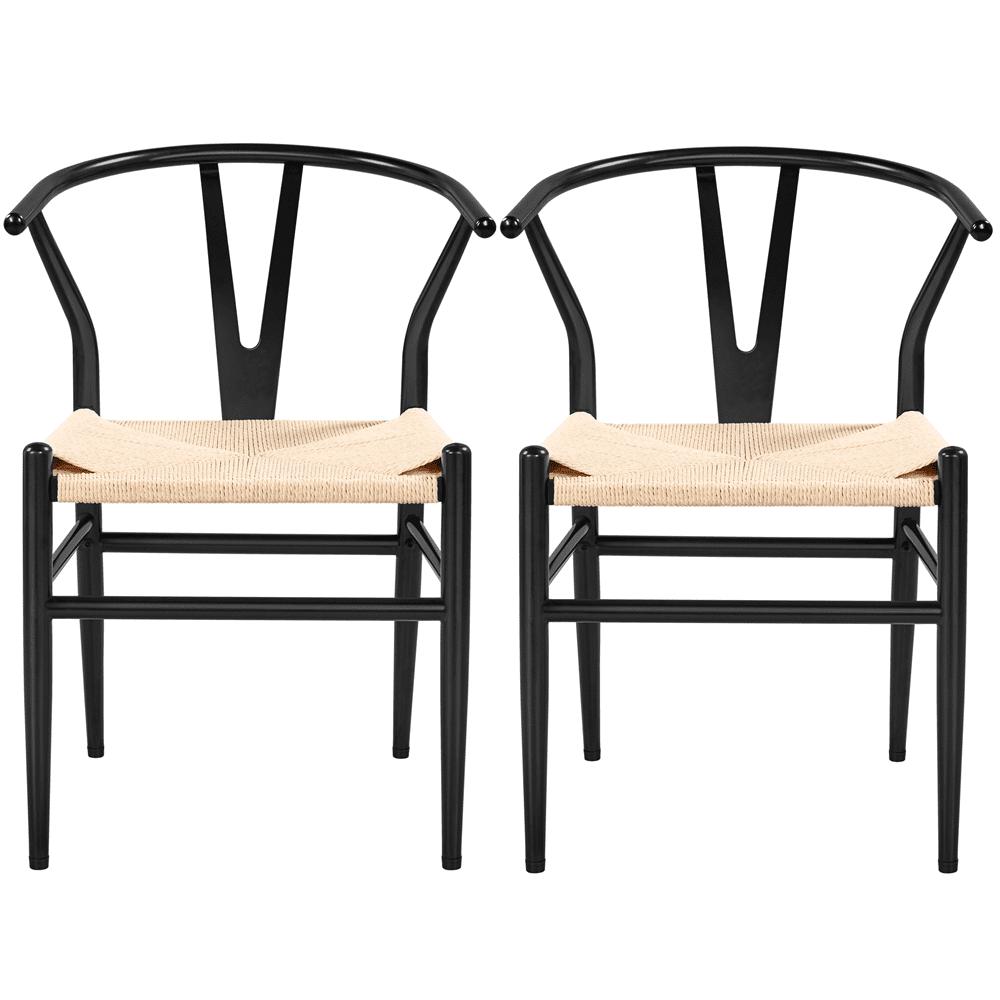 Alden Design Mid-Century Metal Dining Chairs with Woven Hemp Seat, Set of 2, Black