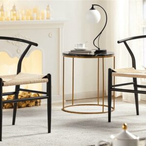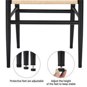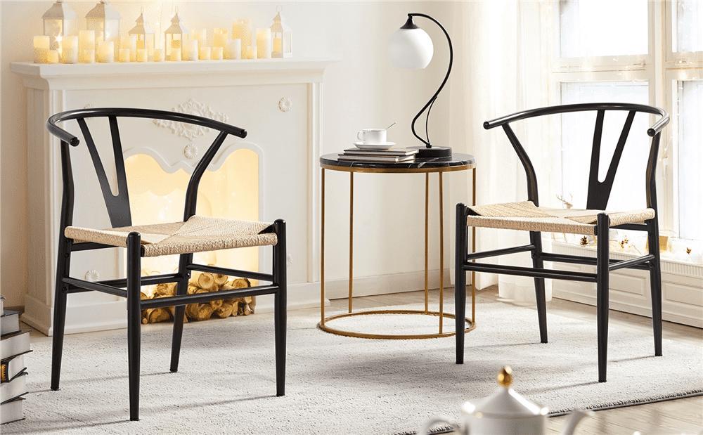 The SmileMart Mid-Century Metal Dining Chairs with Woven Hemp Seat are a great addition to any décor style. The armrest and backrest are molded in one piece with a suitable curve. It makes you feel comfortable when you sit and lean back. The Y-shaped cutout makes the chair attractive and unique, also improving the stability of the backrest. What makes this chair unique is that we adopt natural paper twine to form a three-ply braid seat. It is 100% natural and harmless to your health. Due to the sturdy construction and natural material of the seat and simple color, you can match this pair of chairs to any style of tables or desks. The chair legs have screw-in protective feet, helping keep chairs stable and meeting the uneven floor.