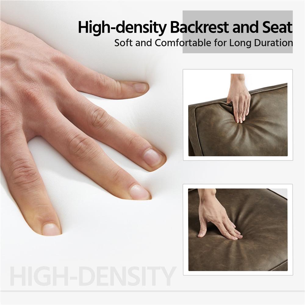 This mid-century modern accent chair is the ideal piece to tie your living room together. The style is elegant and sleek, blending in with any and all home decor. The faux leather, buttery upholstery complements the dark metal frame perfectly. The high-density foam filling makes this chair comfortable to sit in for hours on end. Get cozy and snuggle up here for an afternoon of movies, reading, etc. The padded leather armrests add that extra comfort and add a little dimension to the look of the chair. This accent chair works in any living room, bedroom, home office, etc. Simple assembly is required and detailed instructions are included.