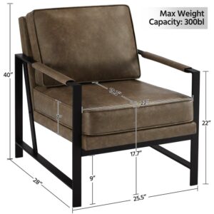 Alden Design Mid-Century Modern Accent Chair with Metal Frame, Brown Faux Leather