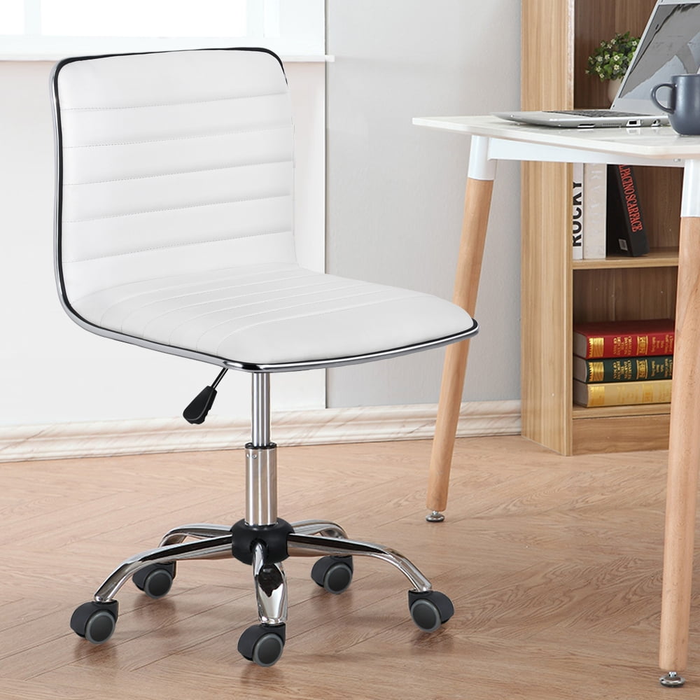 Alden Design Modern Adjustable Armless Faux Leather Swivel Office Chair, White
