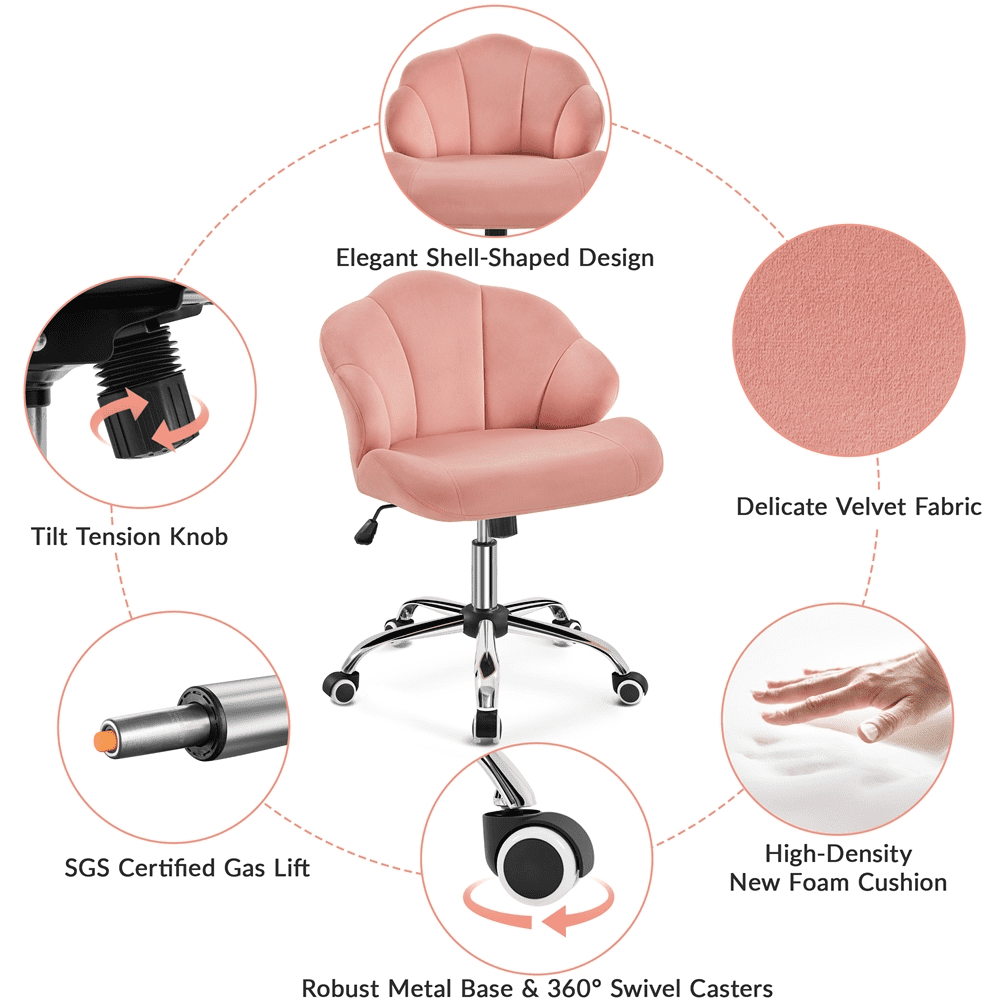 This modern velvet desk chair definitely won’t disappoint. The silky velvet-look fabric and soft foam make sitting in this task chair super comfy. Plus, the heavy-duty chrome-plated metal base and five multi-directional casters make it easy to move around while you work. With an SGS-certified pneumatic cylinder, you can easily adjust the seat height from 46.5-56cm/18.3-22” off the ground using the adjustment lever. The tilt tension knob lets you recline within a certain range for added comfort.
