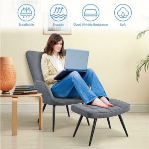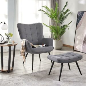 This accent armchair and ottoman set is made of high quality materials. The solid metal legs are sturdy and create modern, clean lines. The upholstery is premium linen fabric, making the chair and ottoman soft to the touch. This set is the perfect piece to add to your living room to kick your feet back and relax. Our accent chair and ottoman are perfect for living rooms, bedrooms, offices, guest rooms, apartments, and small spaces.