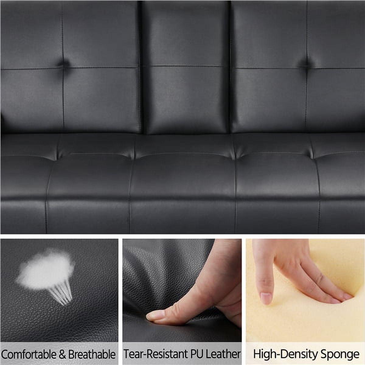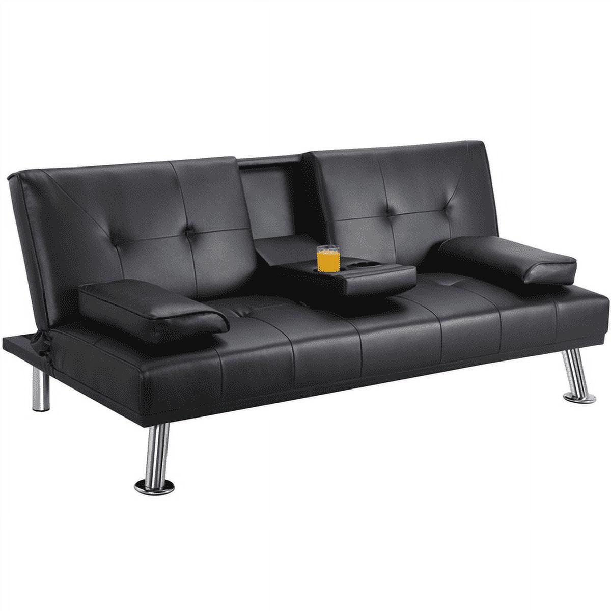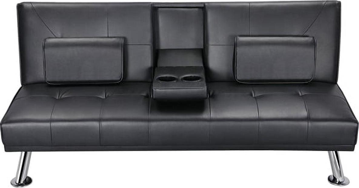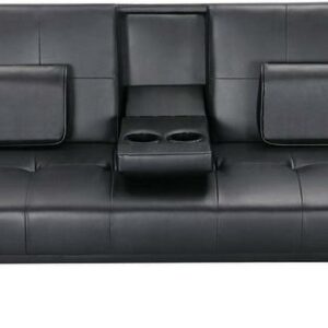 Alden Design Modern Faux Leather Reclining Futon with Cupholders and Pillows, Black