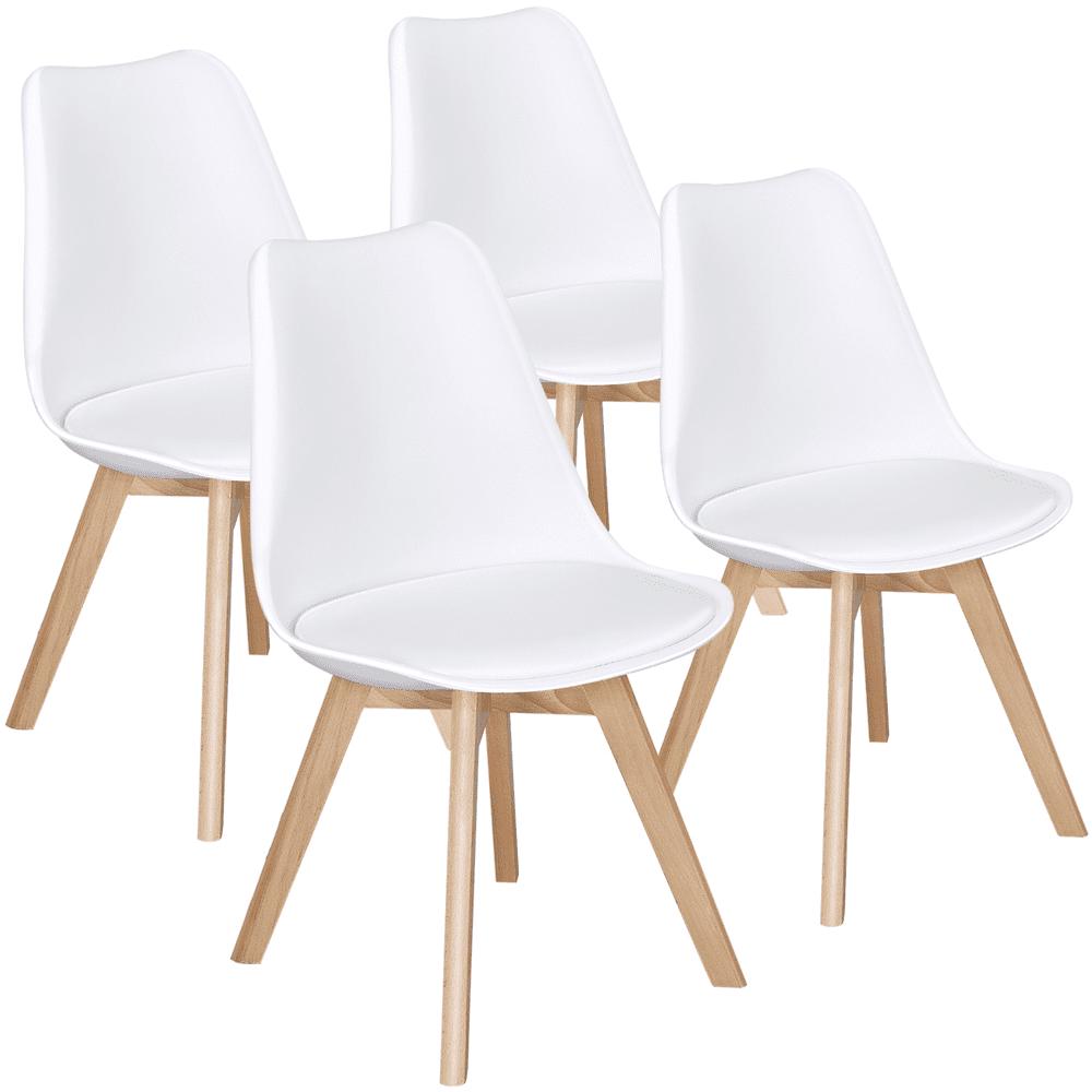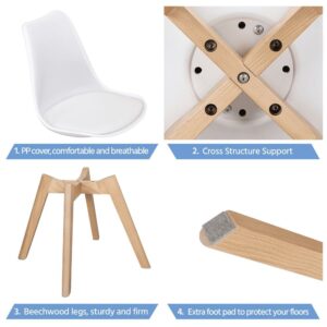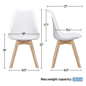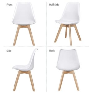 Alden Design Modern Padded Dining Chairs with Wood Legs for Dining Room, Set of 4, White