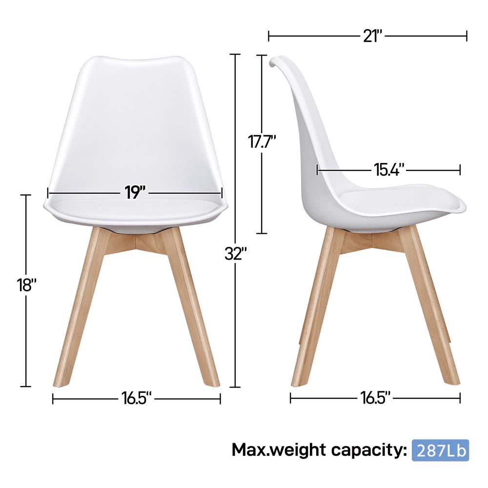 This set of four dining chairs are popular because of their versatile color and beech wood legs. They are stylish, modern, and perfect for a range of home decor styles. The seat and the backrest are molded in one piece, which makes the chairs durable, good-looking and comfortable. To improve the comfort, the backrest is designed in a curved shape so you can sit for long hours. This set of four is perfect for any living room, kitchen, sitting room, porch, balcony, office, etc. The high quality materials are durable and sturdy, guaranteeing they last a long time. For your safety, please do not stand on the chairs. The 32.1″H modern style kitchen chairs are equipped with protective pads at the bottom which are made from felt cloth. These pads protect the floor from being scratched and damaged.