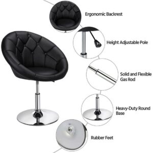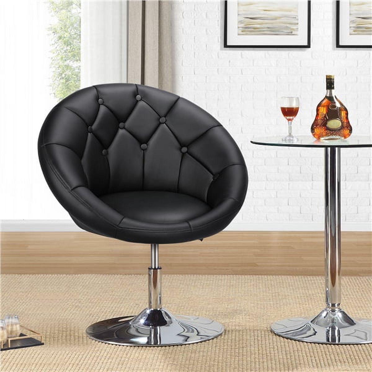 Alden Design Modern Tufted Adjustable Barrel Swivel Accent Chair, Black Faux Leather