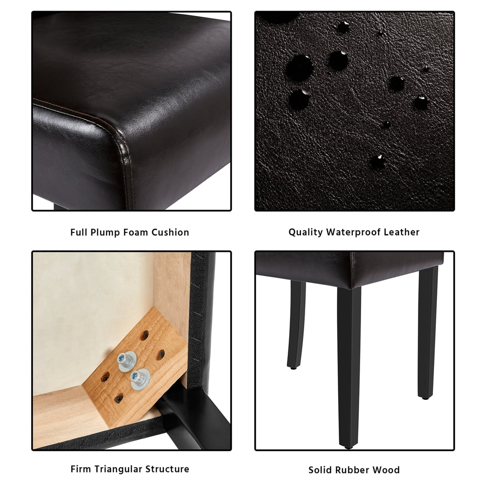 Alden Design Parson Faux Leather Dining Chair with Solid Wood Legs, Set of 2, Espresso
