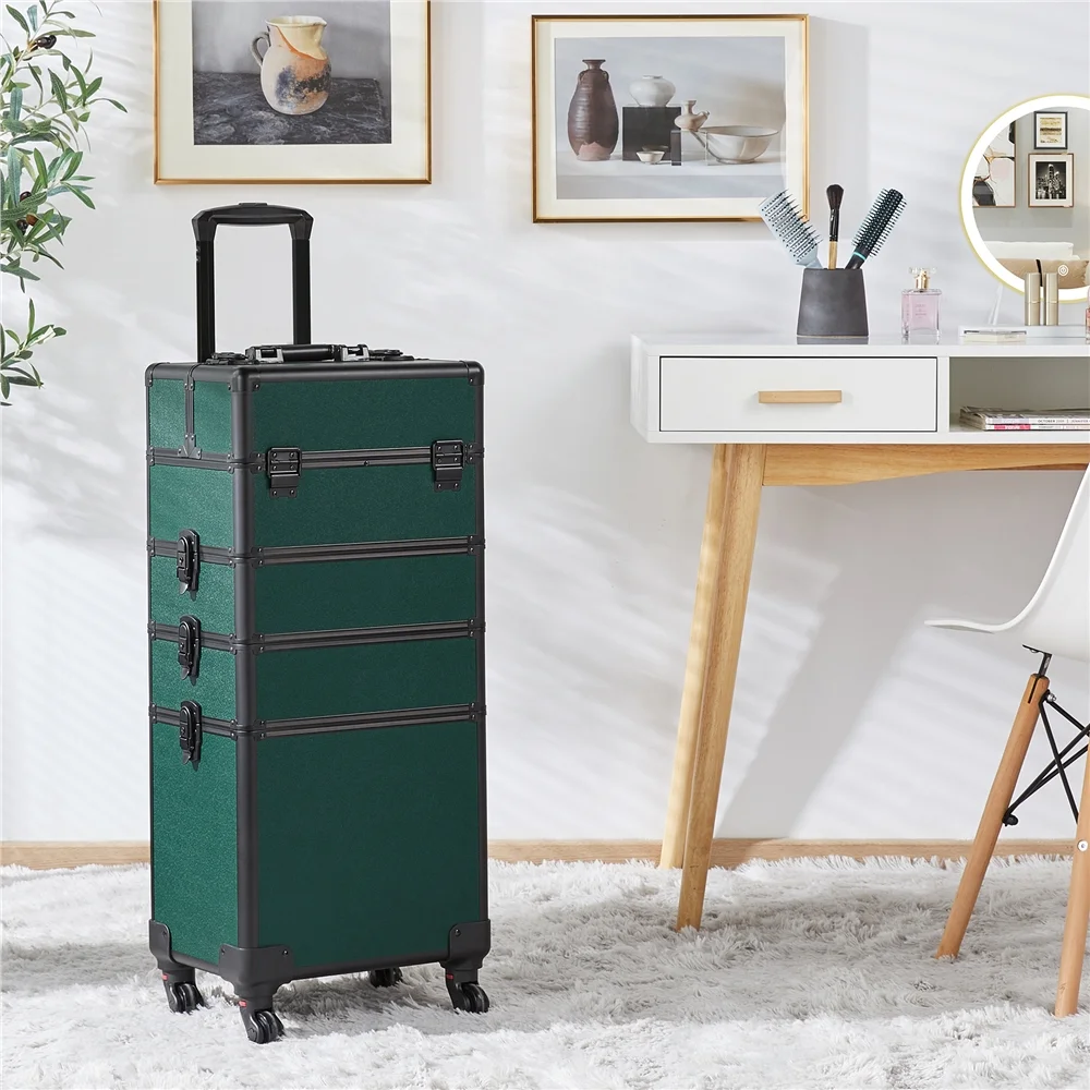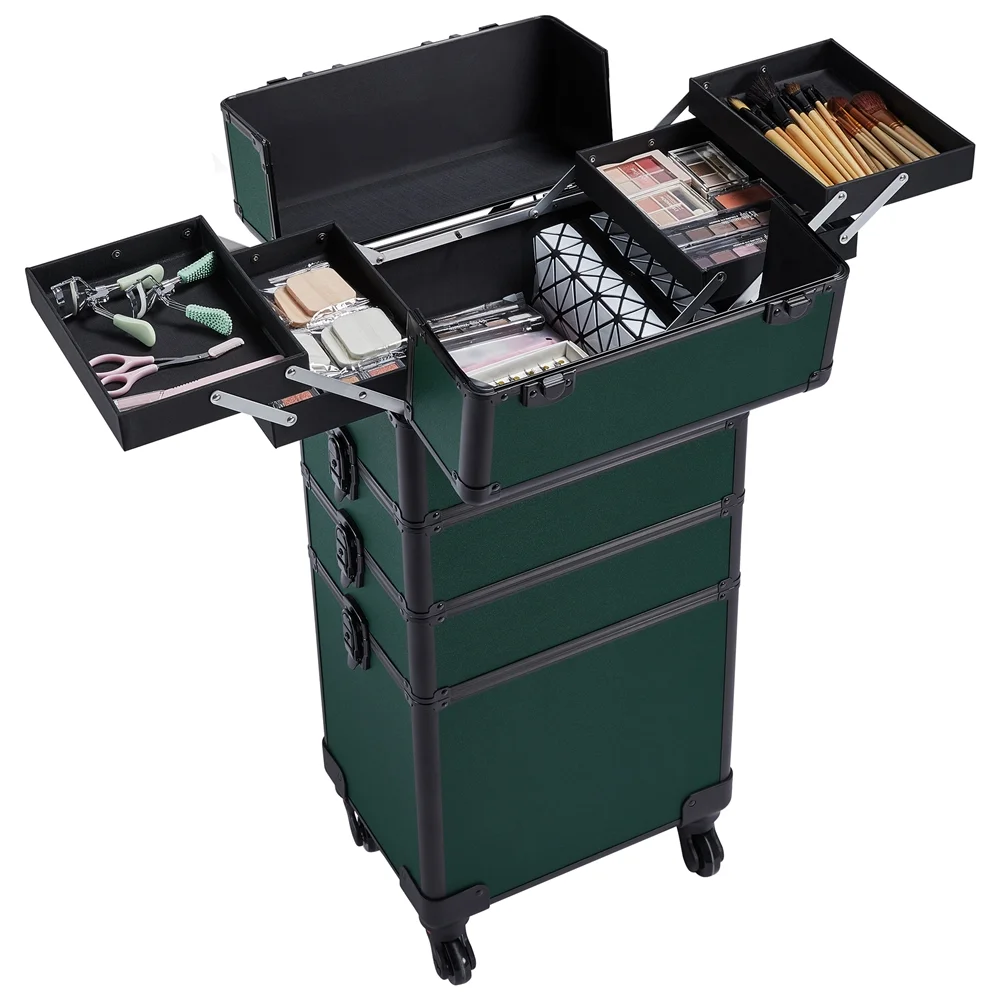 Alden Design Professional 4-in-1 Aluminum Travel Cosmetic Makeup Case, Dark Green
