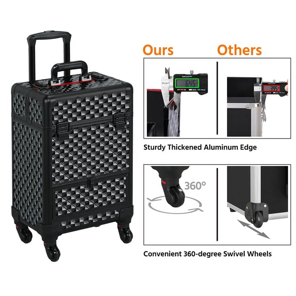 Alden Design Professional Makeup Case, 4 Retractable Trays & 1 Drawer, All Black