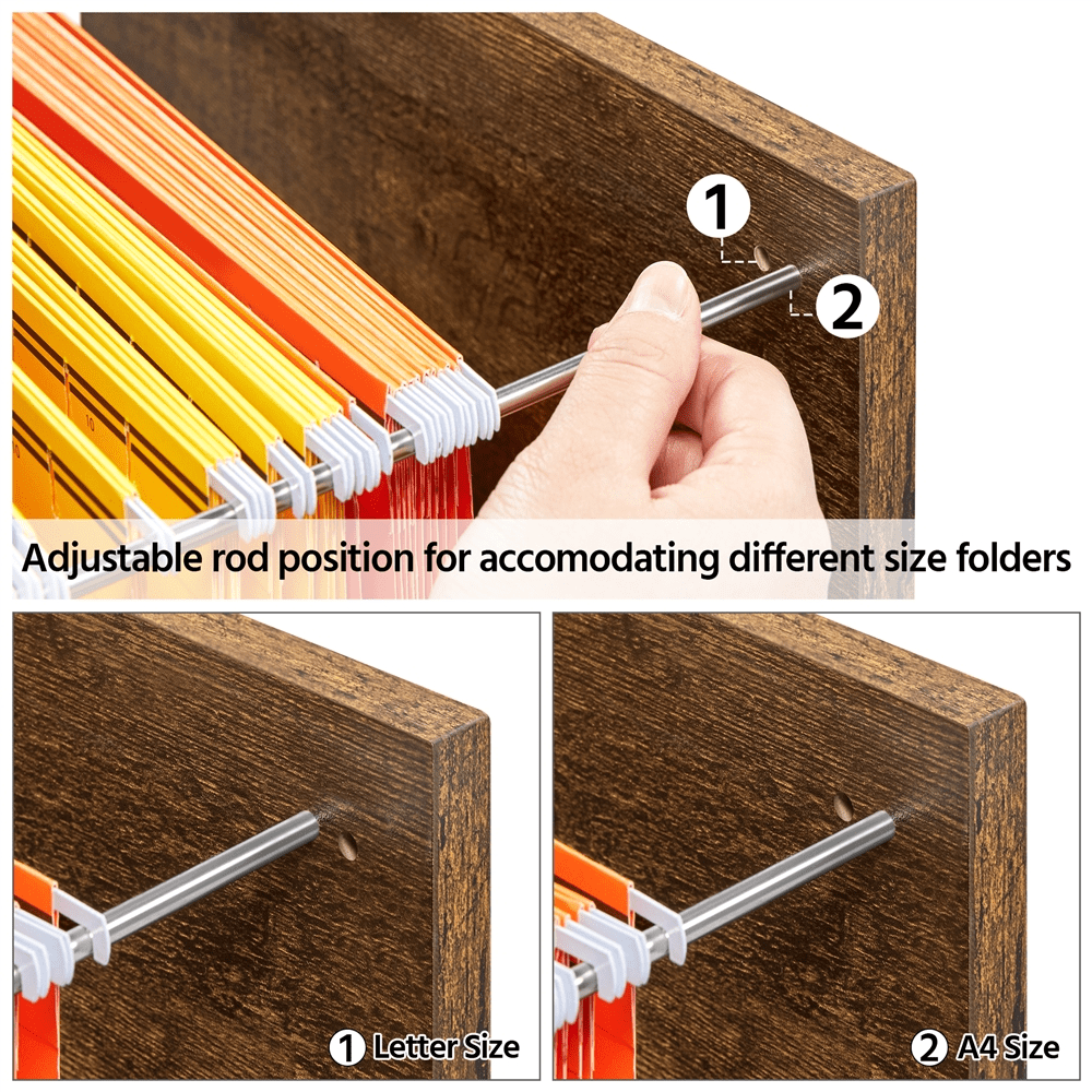 Smile Mart Rolling File Cabinet with 2 Drawers and Side Cubbies, Black/Rustic Brown: Color: Rustic Brown and Black Materials: MDF, particle board Dimension: 39.5″ x 16.0″ x 26.0″ (L x W x H) Drawers: 13.1″ x 13.8″ x 10.4″ (L x W x D) Cubbies: 11.0″ x 11.0″ x 15.0″ (L x W x D) Load capacity for top board: 70 kg / 154 lb.; each shelf: 10 kg/ 22 lb.; each drawer: 20 kg / 44 lb. G.W.: 32 kg / 70.5 lb. N.W.: 30 kg / 66 lb. Note: Please allow 1 cm/ 0.4″ errors due to manual measurement. Please do not place items that exceed the great weight capacity of this chest for your safety.