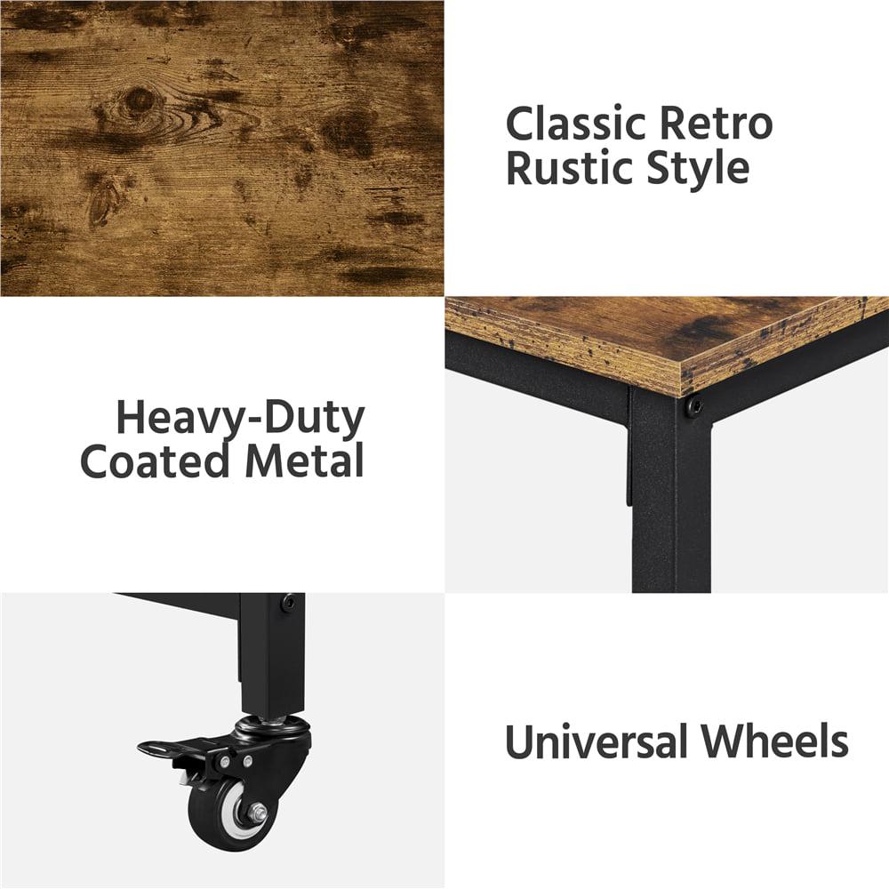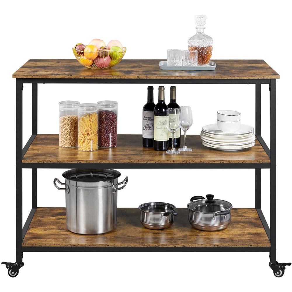 Alden Design Rolling Kitchen Cart with 3 Shelves, Rustic Brown