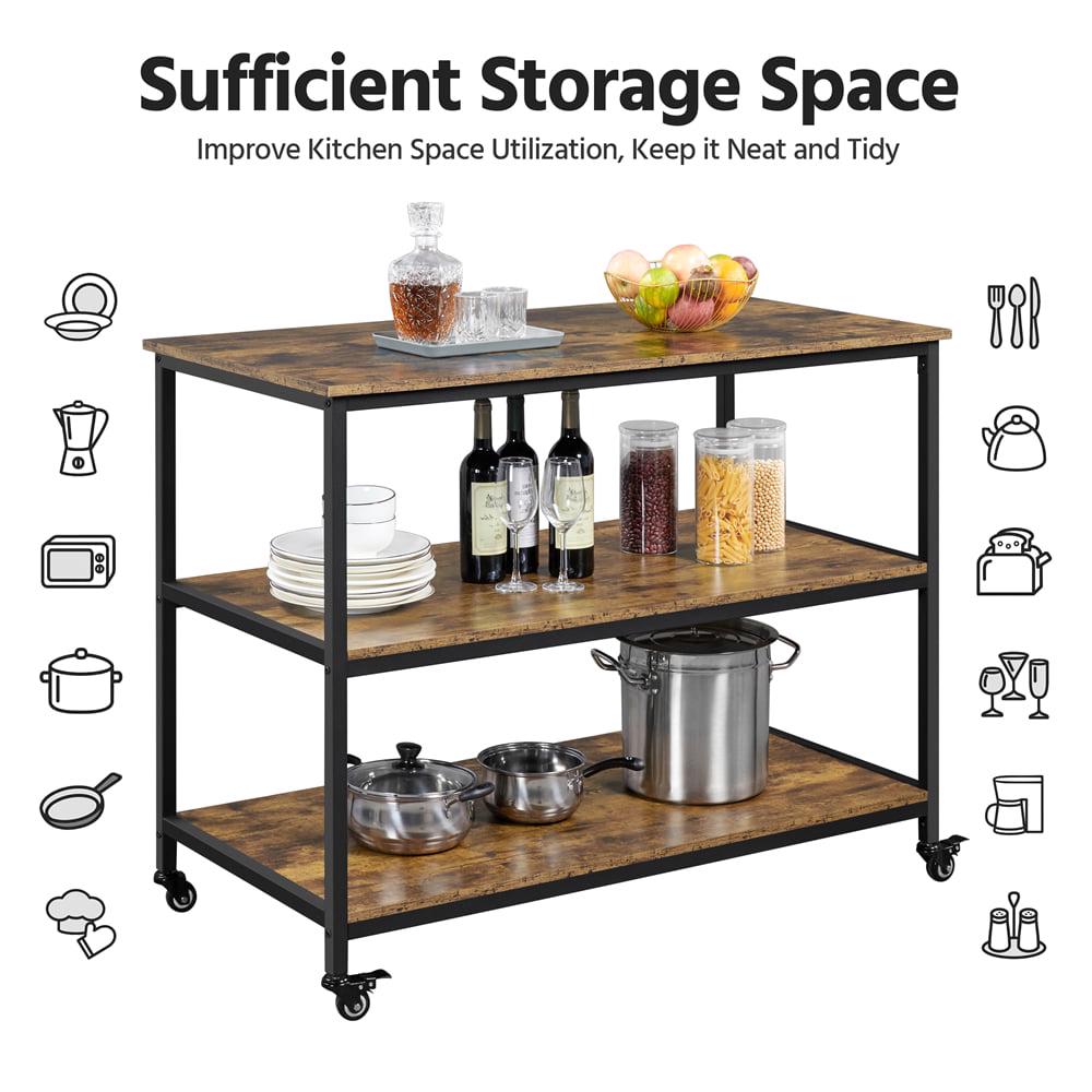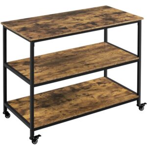 Alden Design Rolling Kitchen Cart with 3 Shelves, Rustic Brown: