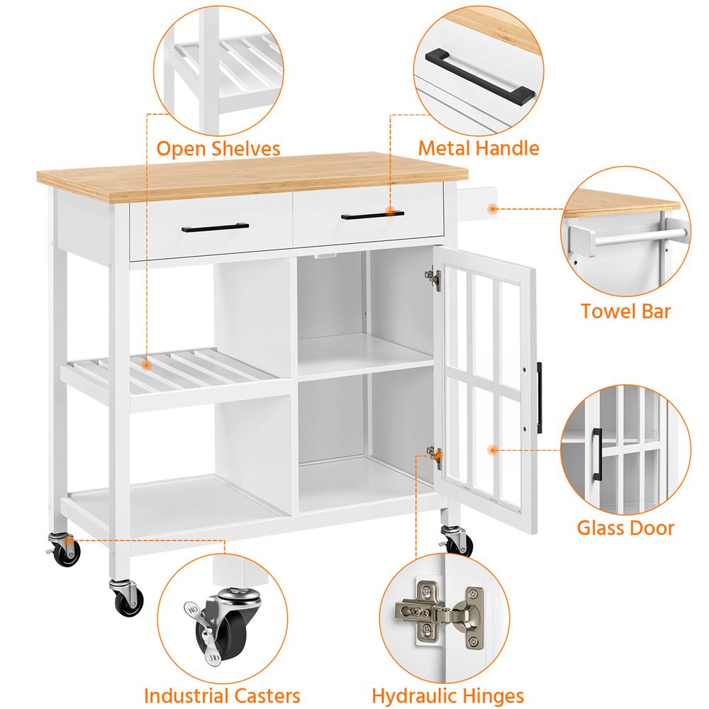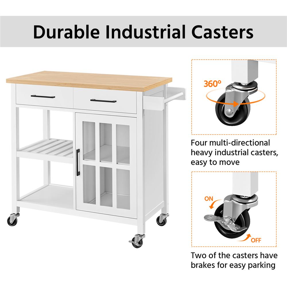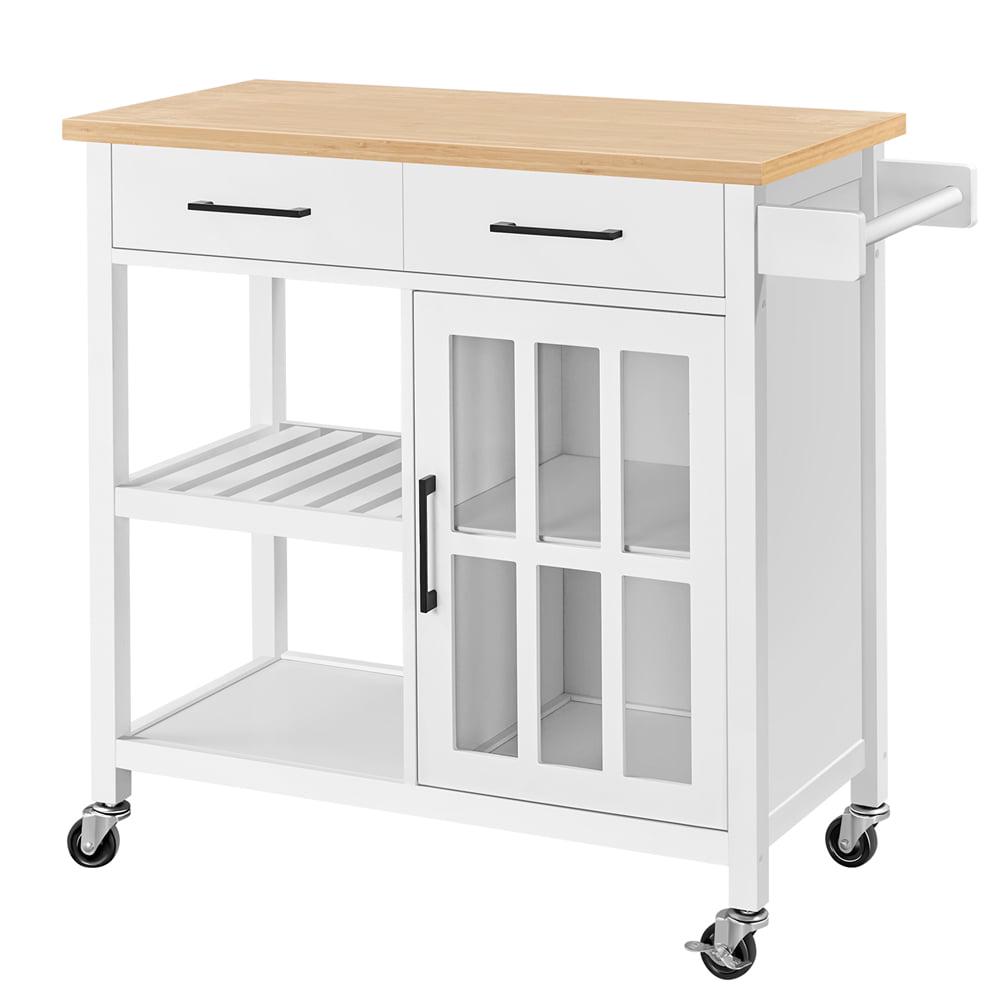 Alden Design Rolling Kitchen Island Cart with Bamboo Top, White