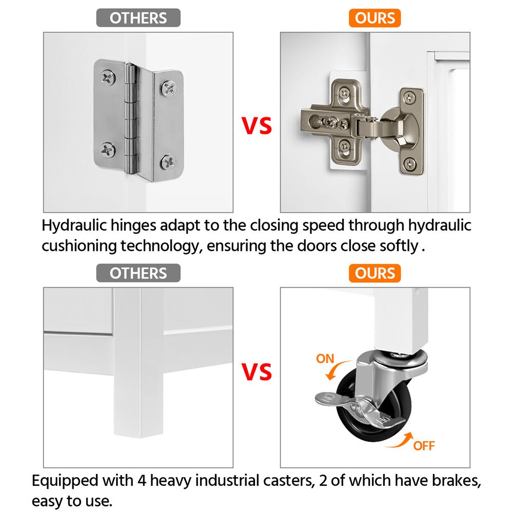 – Static load capacity: countertop: 60kg/135lb; shelf: 11kg/25lb; drawer: 6kg/13lb