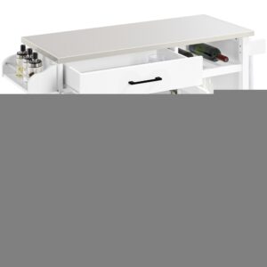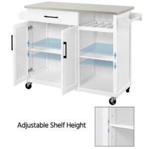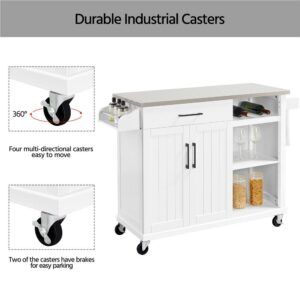 Alden Design Rolling Storage Kitchen Cart Cabinet with Steel Top, White