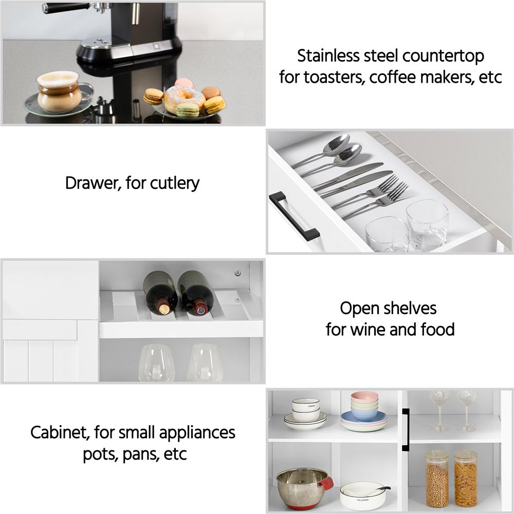 - Color Options: Black or White Cart, silver stainless steel countertop