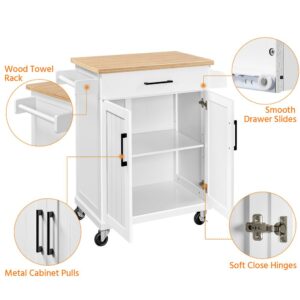 Alden Design Rolling Storage Kitchen Cart with Pull Out Drawer, White