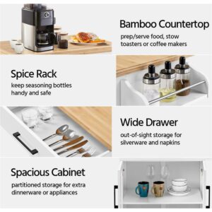 Alden Design Rolling Kitchen Island Cart with Spice Rack and Storage Drawer, White: