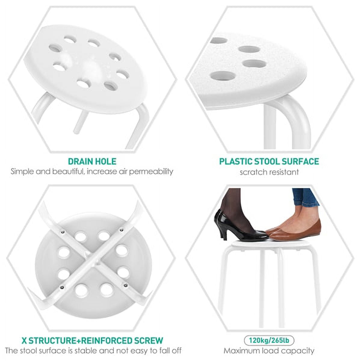 These plastic stack stools are made of thickened reinforced materials with an excellent weight capacity of up to 265 lb. They are lightweight and stackable stools, which are convenient to store, carry and move around. Each stool has 8 round holes with a diameter of 1.2 inch in the seat surface for decorative purposes. These simple and fashionable stools are ideal for use at home, office, school, etc.