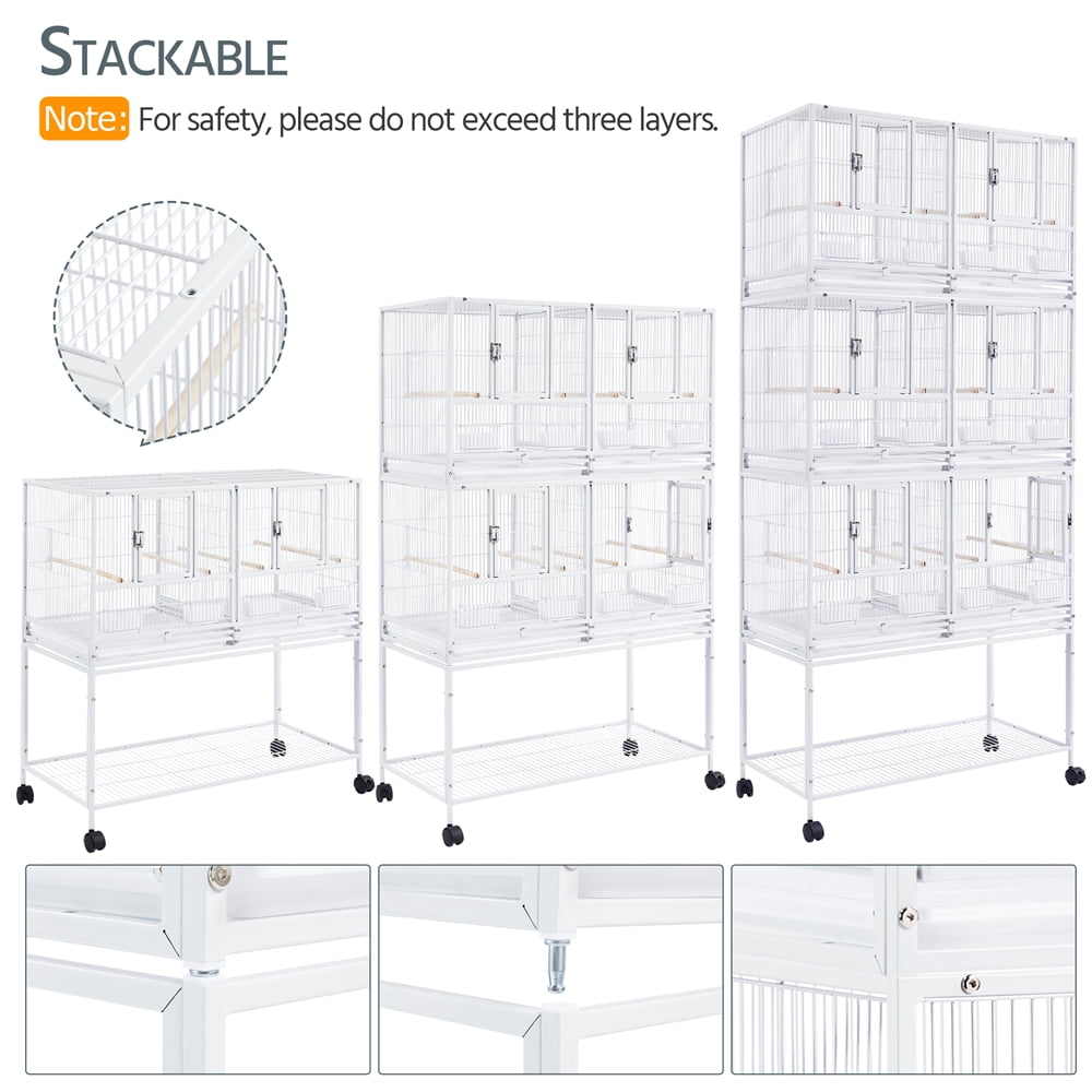 Alden Design Stackable Wide Divided Metal Bird Breeder Cage with Rolling Stand, White