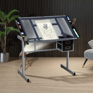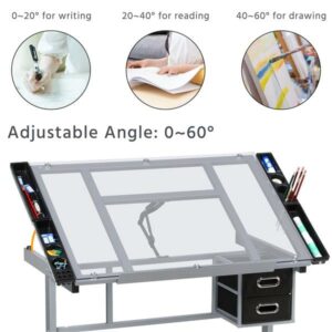 Alden Design Tempered Glass Adjustable Drafting Table with Storage Drawers: