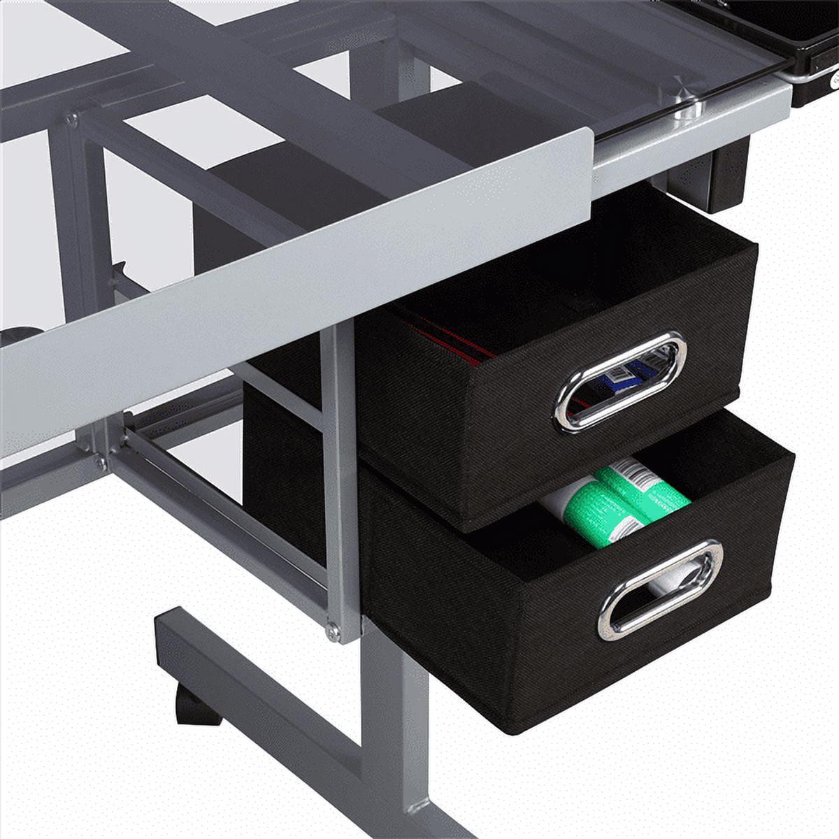 Alden Design Tempered Glass Adjustable Drafting Table with Storage Drawers