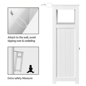 – GOOD QUALITY AND SAFE TO USE: Our freestanding floor cabinet is made of premium P2 MDF and metal accessories. The surface is polished well and smoothly, and it is easy to clean. Wipe it clean with a wet cloth. In addition, for safety, the bathroom storage shelf has an anti-toppling device behind it. It is safe, especially for children and old people.