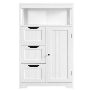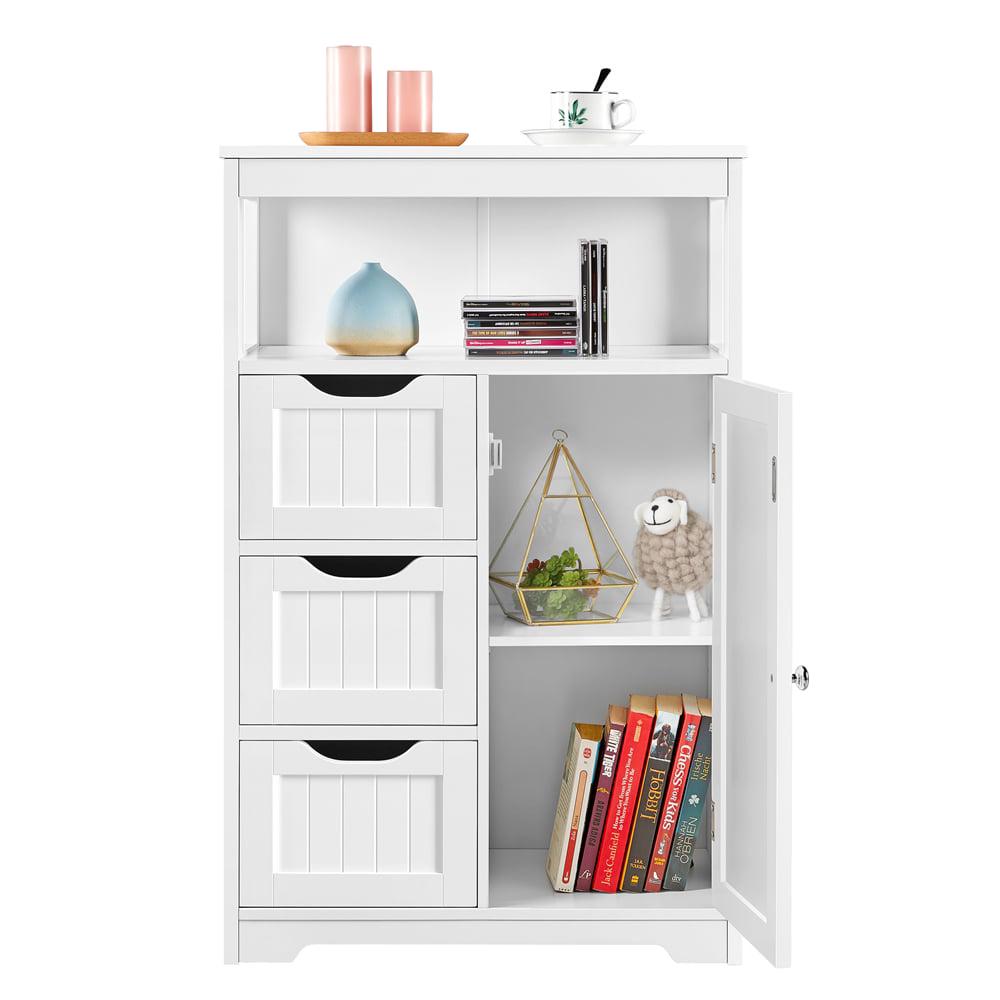 – SIMPLY LOOKING FOR VERSATILE USE: This MDF storage cabinet is rectangular in white and is easily paired with other furniture. The simple, modern bathroom cabinet has clean straight lines on the door panels and drawers, which adds extra decoration beauty to the cabinet. This modern stylish cabinet goes well with your bedroom, living room, kitchen, bathroom, office, or anywhere the things need to be organized and stored.