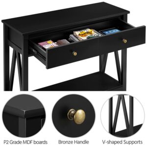 Alden Design Wooden Entryway Console Table with Storage Drawer, Black
