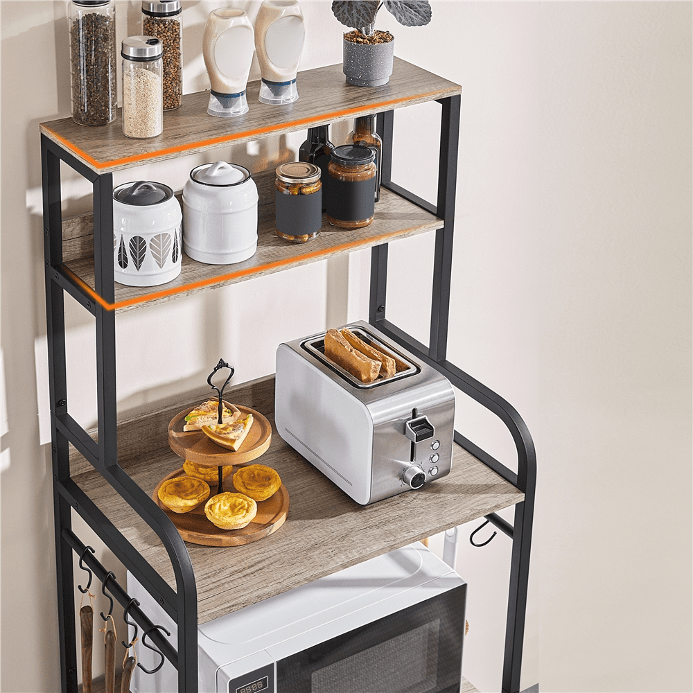 Alden Design Wooden Kitchen Baker’s Rack Utility Storage Shelf Unit Microwave Stand, Gray