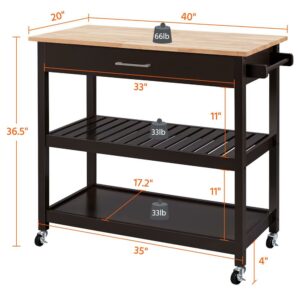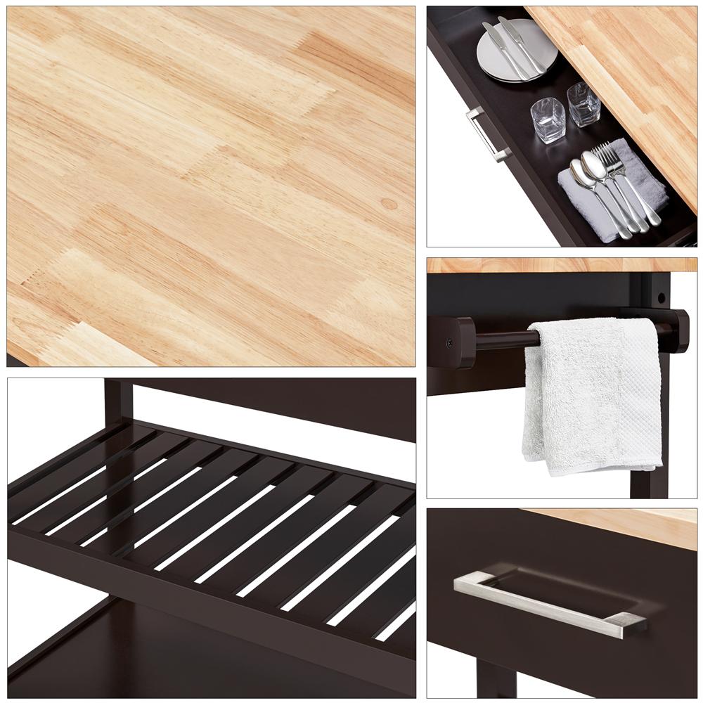 Alden Design Wooden Kitchen Cart with Storage Shelves and Drawer, Espresso/Oak