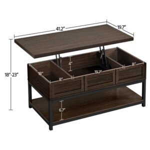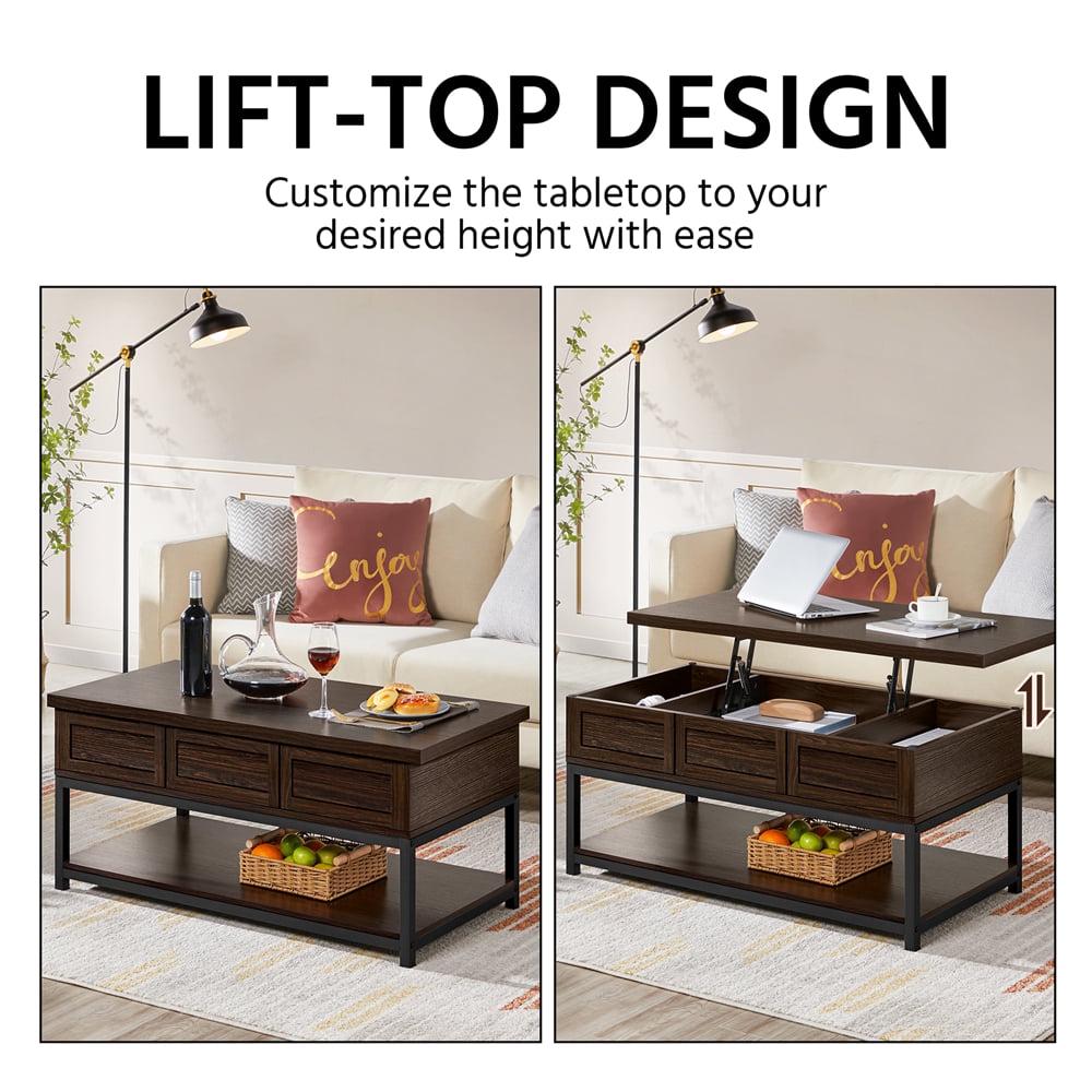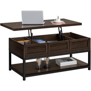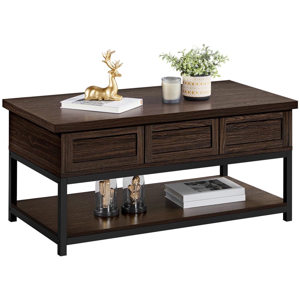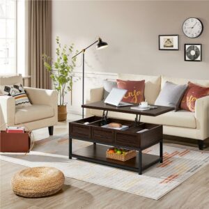 Alden Design Wooden Lift Top Coffee Table with Storage Shelf, Espresso