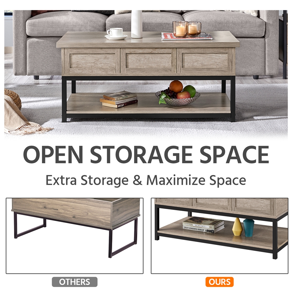 Alden Design Wooden Lift Top Coffee Table with Storage Shelf for Livingroom, Rustic Gray