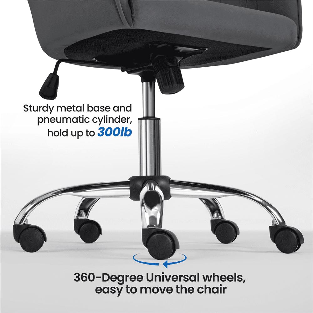 Looking for a functional and fashionable office chair for your working place It’s an ideal desk chair for home use or office use. Make your sitting comfortable with this comfy computer chair! You can use the adjustment lever to adjust height safely and freely. With 360° swivel casters and a heavy-duty base, this armchair can be moved from task to task conveniently; with the modern design and aesthetically pleasing appearance, our desk chair can also provide you with a comfortable sitting experience and the fabric texture makes your living/working space stylish. We are dedicated to what makes both your life and budget happy, rest assured that all our items are subject to rigorous tests before packaging and shipment.