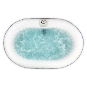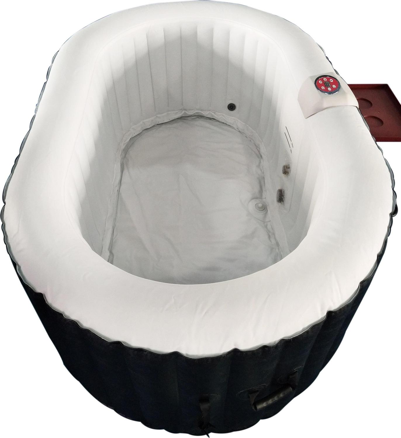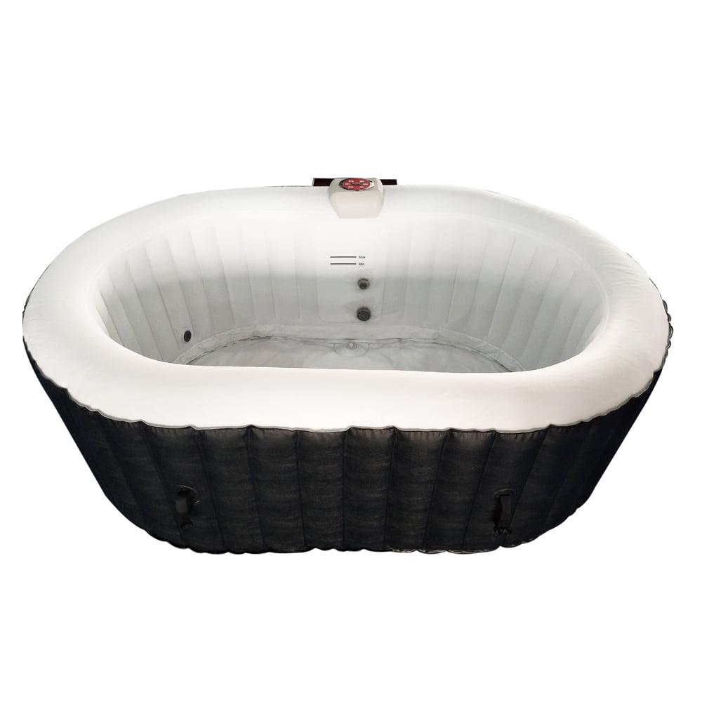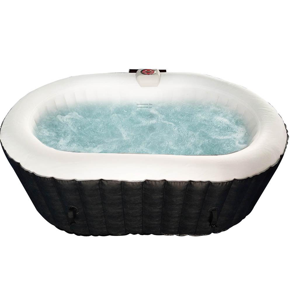 – Oval hot tub with 145 gallon water capacity; holds up to 2 people